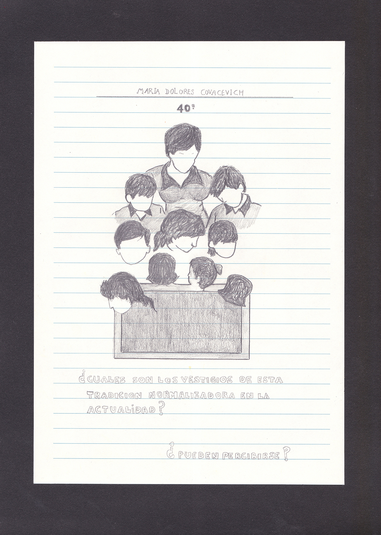 Esta serie de dibujos ha sido creada a partir de las ilustraciones del libro, acompañadas en su mayoría de un texto escrito en el año 2019 por la autora argentina María Dolores Covacevich, en el que hace énfasis en la tradición normalizadora-disciplina- dora, la feminización de la profesión docente y en los vestigios de esta tradición en una educación sexista, poco inclusiva y heteronormativa.